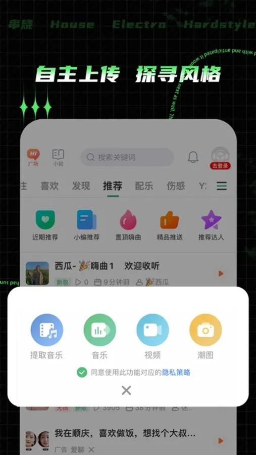 发布自己的电音作品,作为一个优秀的DJ,在这里你可以找到同伴,找到知己,找到粉丝。7妹、赵小涣、光太、海伦都在这里等你