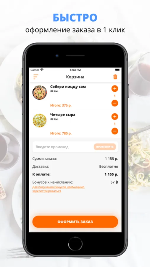 Установите приложение и заказывайте вкусную пиццу всего в несколько касаний!