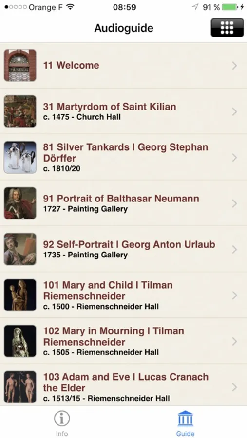 The official audio guide app for the permanent collection of the Mainfränkisches Museum Würzburg with all audio guide tracks and (some) images of the works as well as information on the museum and your visit.