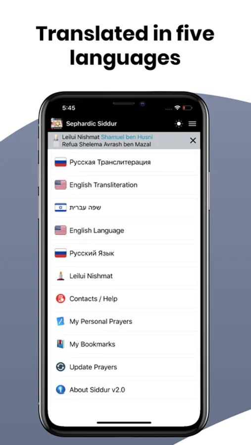 The first and only multi-lingual Sephardic Siddur available in five languages. All your daily prayers in your pocket! Each prayer includes specific instructions in each language for both men and women, as well as for leader (hazan) and congregation. Sephardic Siddur app contains voweled text for Hebrew readers for easier reading and pronunciation, as well as accurate translation and transliteration for Russian and English readers with added phonetic representation. Sephardic Siddur app does not require internet connectivity to operate after initial download.