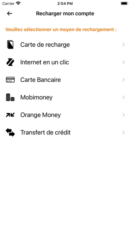 - Gérer votre compte mobile (recharger le compte, consulter le solde, acheter une option, etc.),
