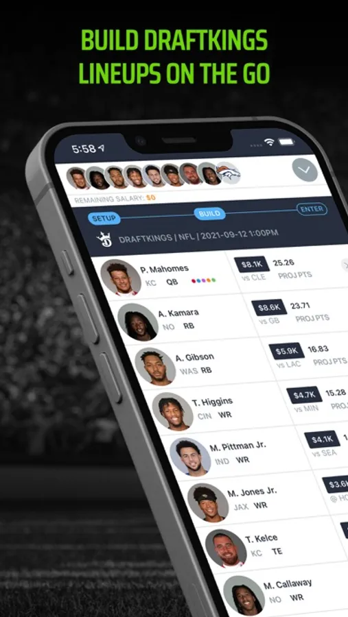 LineupHQ Express for DraftKings works for daily fantasy football, basketball, baseball, hockey and golf. Whether you’re playing DFS NFL, NBA, MLB, NHL, PGA, LOL, or CSGO this is the app for you!