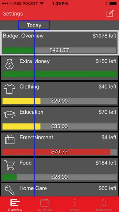 Another special feature is the incorporation of reminders. Our user base is very heavily relient on reminders to be sure that everything they need to do in a day is completed and completed on time. These reminders can be used to remind a user to pay (and record) a bill, or to record their income. Additionally, users can choose to receive daily reminders to enter their transactions from the day.