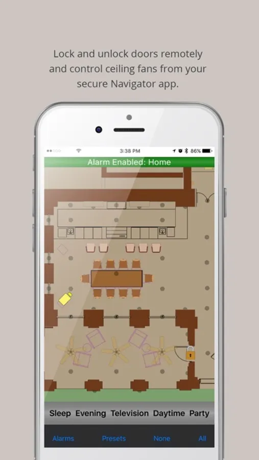The CommandScape Navigator™ app allows you to connect with and control your CommandScape integrated operating and management system from anywhere. Using your mobile device, manage your home or business security system, cameras, lighting, shades, and more! With a tap or swipe on your personalized floorplan, easily connect, view and control any of your system devices from anywhere in the world.