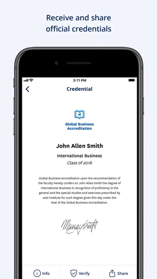 Blockcerts Wallet is the easiest way to receive and share official credentials from a wide range of institutions, like universities, government agencies, and employers.