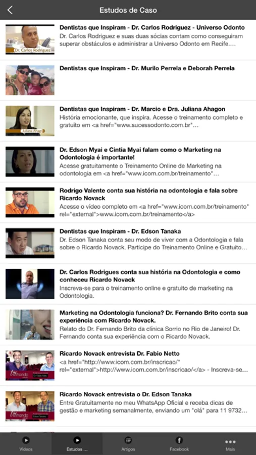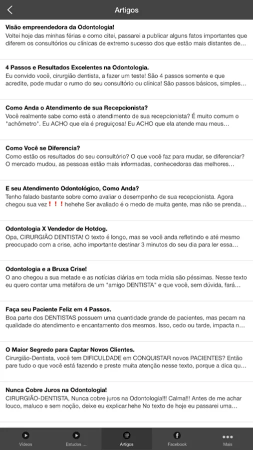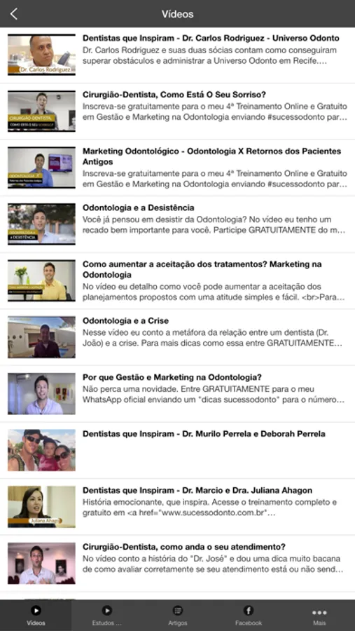 O SucessOdonto APP é uma verdadeira central de informações em Gestão e Marketing na Odontologia. Neste aplicativo você tira suas dúvidas, tem acesso a conteúdo em vídeos e textos de primeira qualidade e interage com vários outros dentistas.