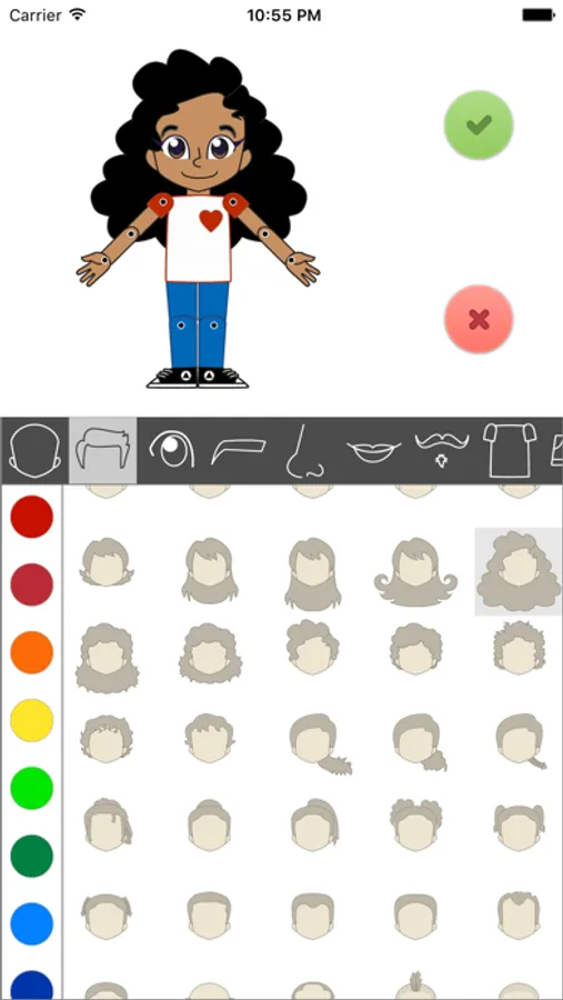 • Select your face, hair, eyes, eyebrows, nose, mouth, beard and clothing. The super cute art was made by the talented designer Bruna Saddy (as for me, all I can draw are stick figures).