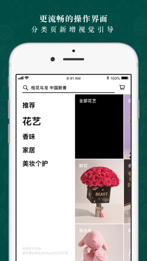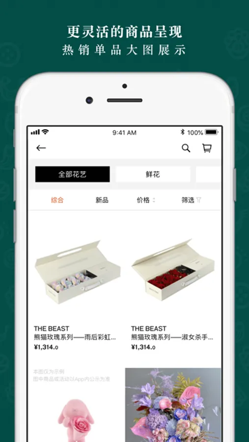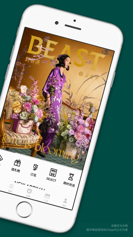 APP虚拟社区5大板块:野兽派花店、野兽家居廊、野兽小姐、贵妇美容室、野兽精选