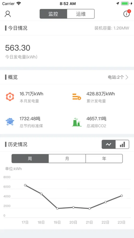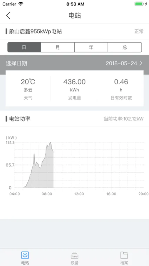 用户可以通过客户端实时查看电站的运行状态,以及电站的历史发电查询。