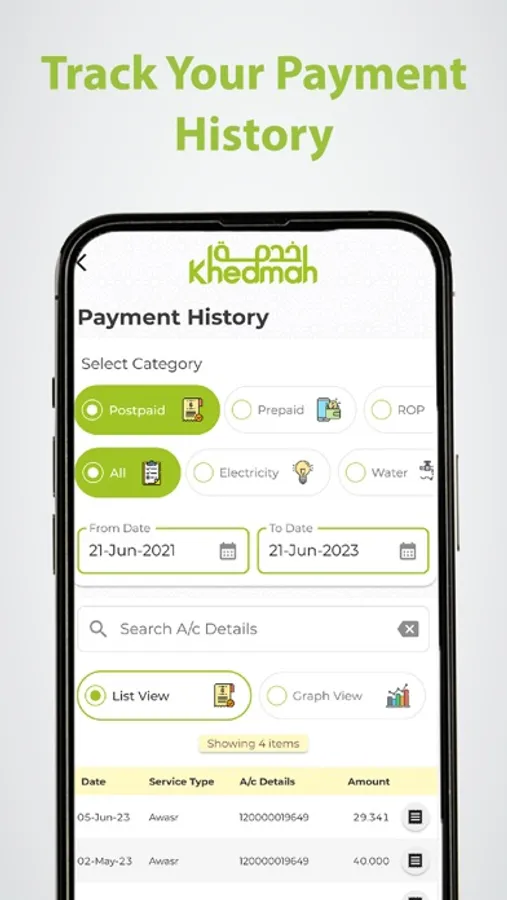 Khedmah mobile app offers easiest and fastest way to manage, view and pay Electricity and Water bills of Muscat Electricity Distribution Company - MEDC, Mazoon Electricity Company - MZEC, Majan Electricity Company - MJEC, Rural Areas Electricity Company - RAECO, Dhofar Power Company - DPC and Public Authority of Electricity & Water. Public Authority for Social Insurance - PASI subscription fees. Post paid telecom bills of Omantel, Ooredoo & AWASR Broadband. Royal Oman Police (ROP) Traffic Fines Payment and other ROP Services.