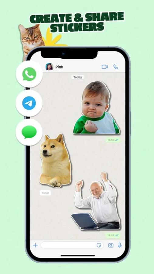- SHARE your Stickers with your friends on WhatsApp, iMessage and Telegram!