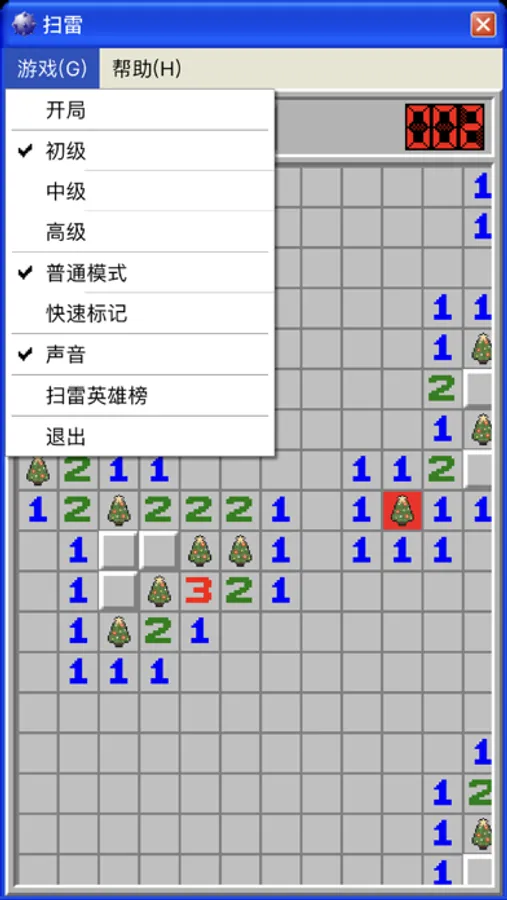※ Select the button to open, click on the square to open the box. If the number is displayed, congratulations, no thunder, the number represents the number of mines in the eight directions around it, based on which to infer which square to dig next;