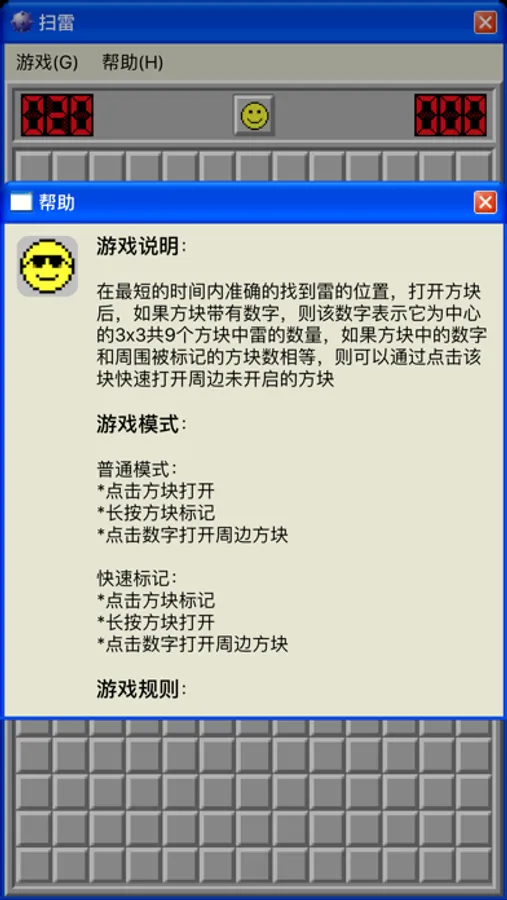 Classic minesweeper game, highly restored windowsXP interface, no ads.