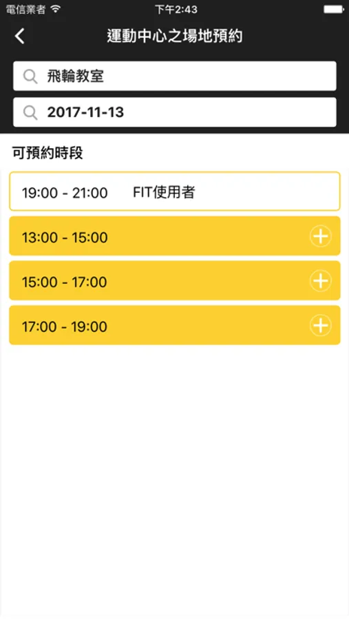 ● 場地搜尋:可以依據運動場地類別搜尋,可於中心內搜尋,也可跨中心搜尋
