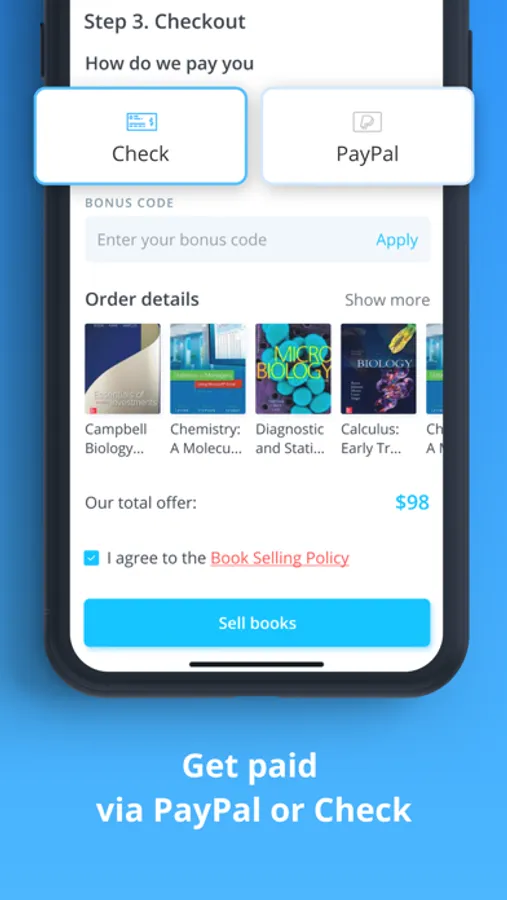 With BooksRun app, you can create buyback orders in a few steps. BooksRun offers HIGH prices and pays for your shipping.