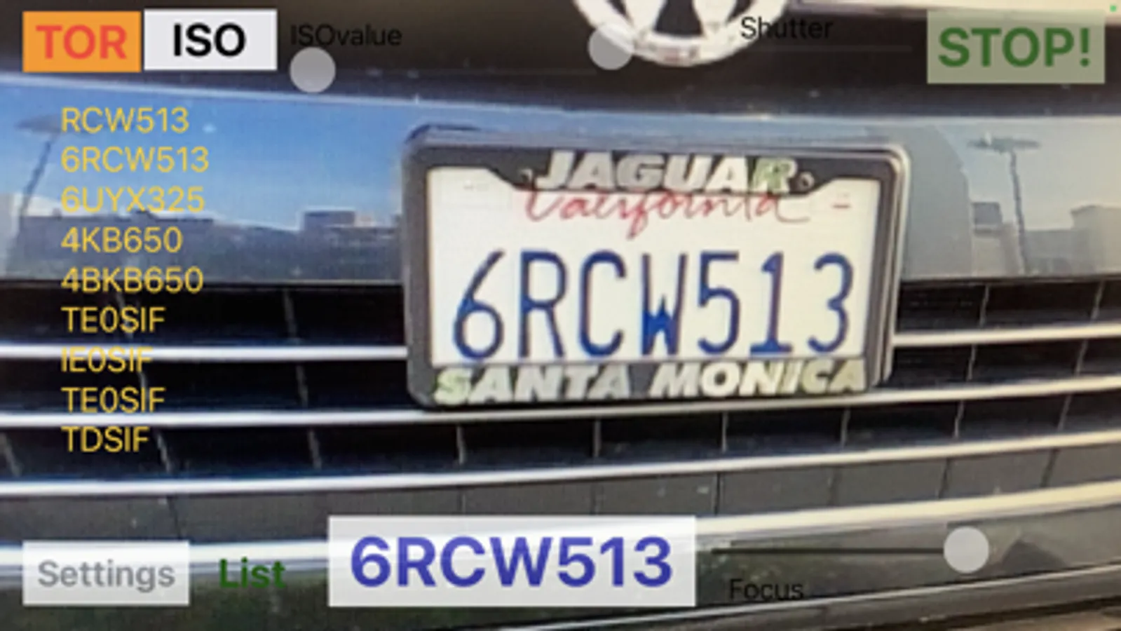 This APP does Automatic License Plate Reading (ALPR) right on your iPhone or iPad.