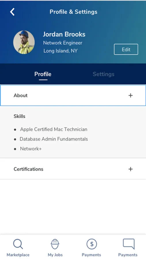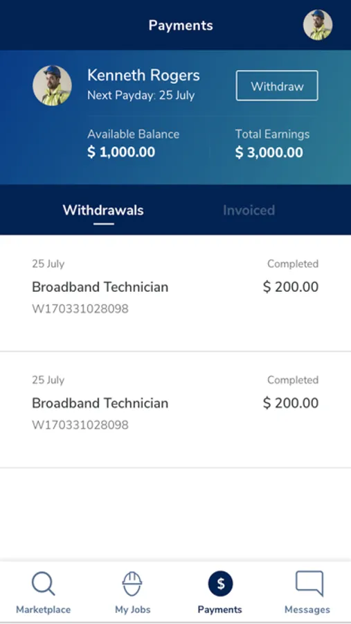 5. View profile information and account balance, able to withdraw funds to Engineer's preferred method of payment.