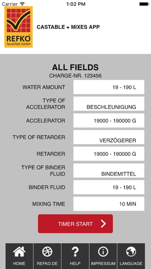 This app is an instruction for the correct handling of our products. Based on the input of the material quantity, the required water and/or binder quantity will be calculated and displayed. If additional information for the optimal application is necessary, depending on the product, it will be provided as well. A countdown meter helps to keep the correct mixing time.