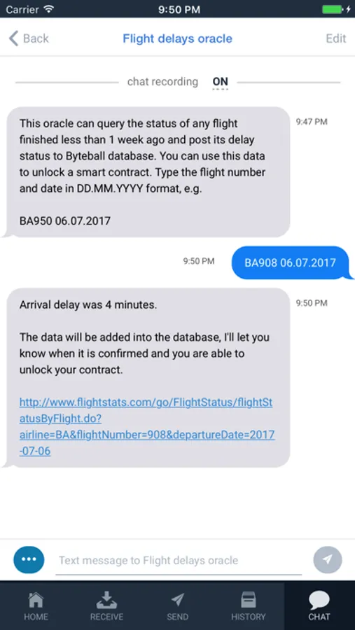 - use textcoins to send/receive Bytes through other chat applications, such as iMessage, WhatsApp, Telegram, etc, or via email, even if the recipient has no Obyte wallet yet;