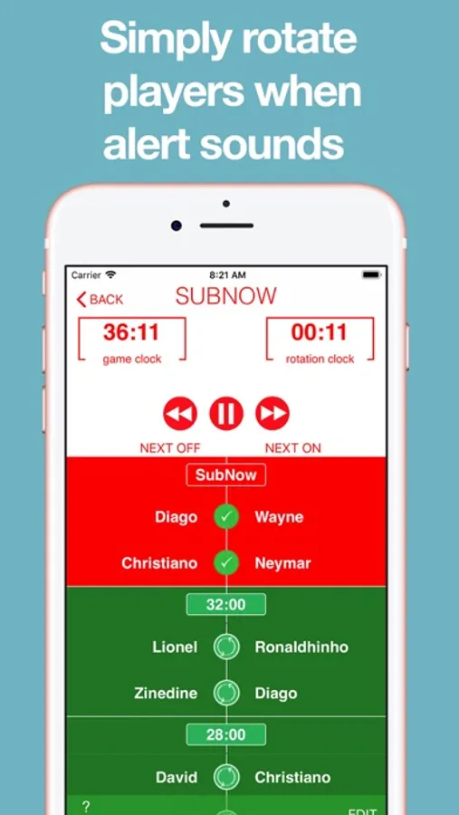 SubNow prevents those sub rotation errors that can lead to players feeling they are “not good enough” to deserve as much game time as their friends.
