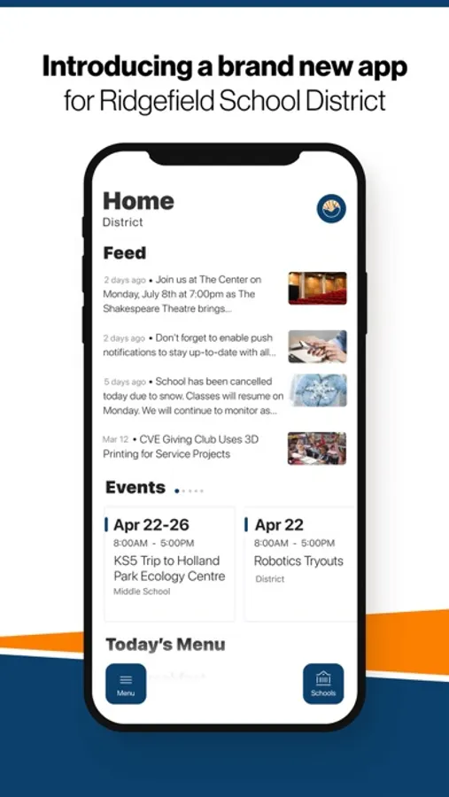 The official app for the Ridgefield School District, WA allows users direct access to the most recent news, announcements and event calendars. Don't miss out on any important notifications. Users may also access the directory of district faculty and staff, find the location of school events, contact staff and departments, follow athletic scores and updates, and much more.