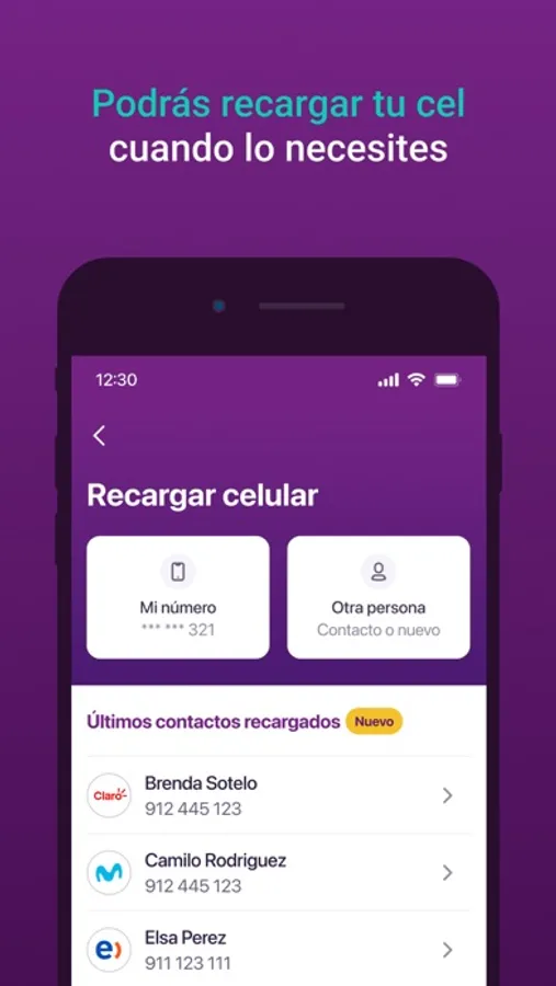 • Recarga el saldo de tu celular desde donde estés, sin pagar comisiones*.