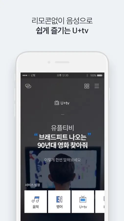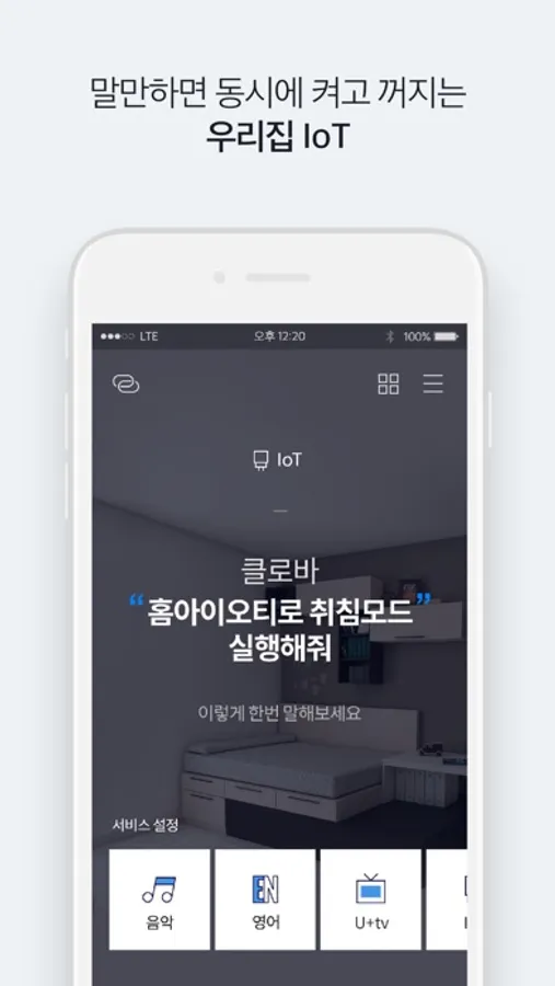 유플러스가 제공하는 AI스피커의 와이파이 연결, 대기화면 설정, 호출어 변경, IoT 및 U+tv 연결을 관리할 수 있습니다.