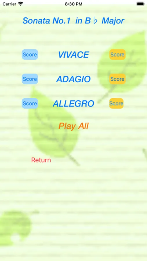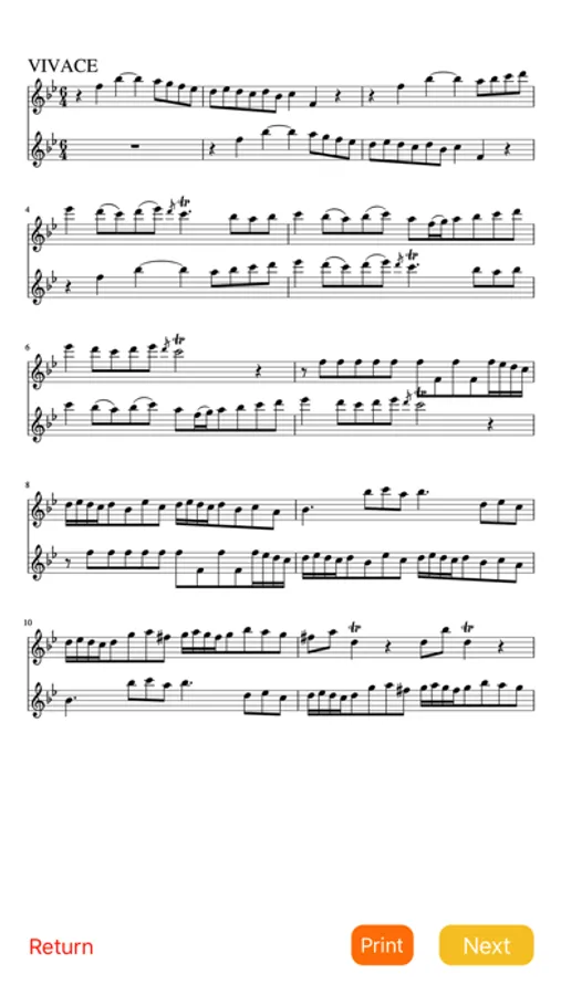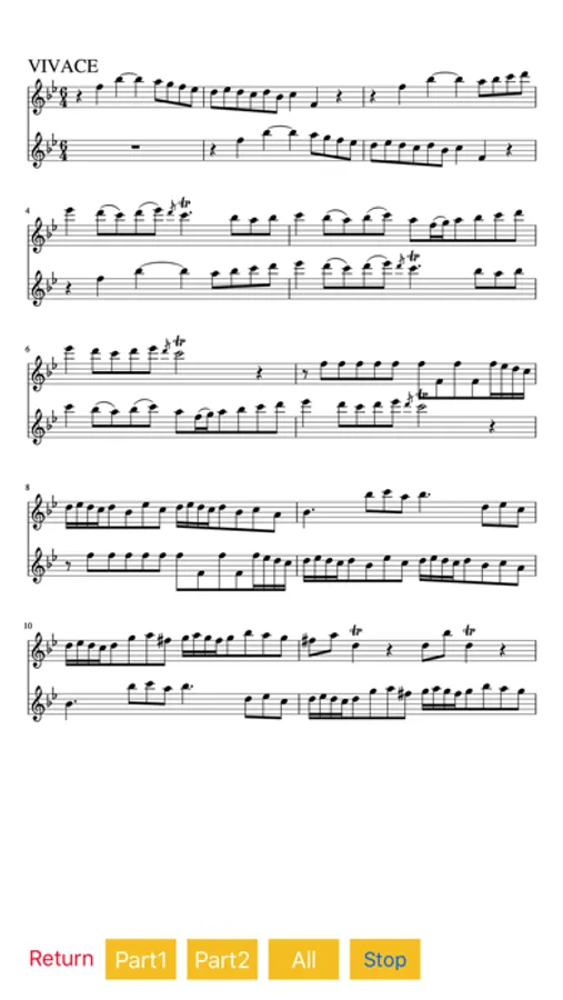 This app, do not go out together for a marker to play. This app will be replaced by the score in accordance with the progress of the song. It is A = 440Hz (modern pitch)and A= 415(baroque pitch).It is to be able to play at a speed of 6 stages. Along with how to practice to play for each movement, it is also possible to practice by playing through one song sonata.