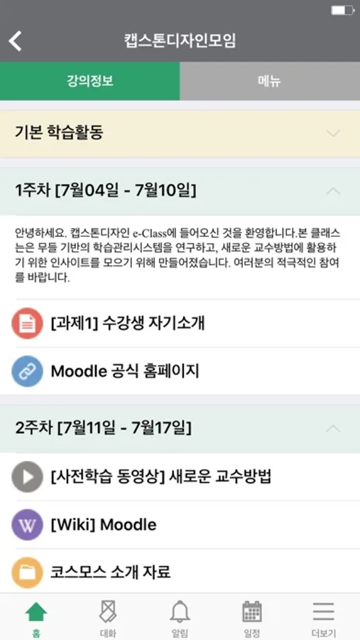 - 게시판/ 과제/ 위키 등 다양한 학습활동 지원