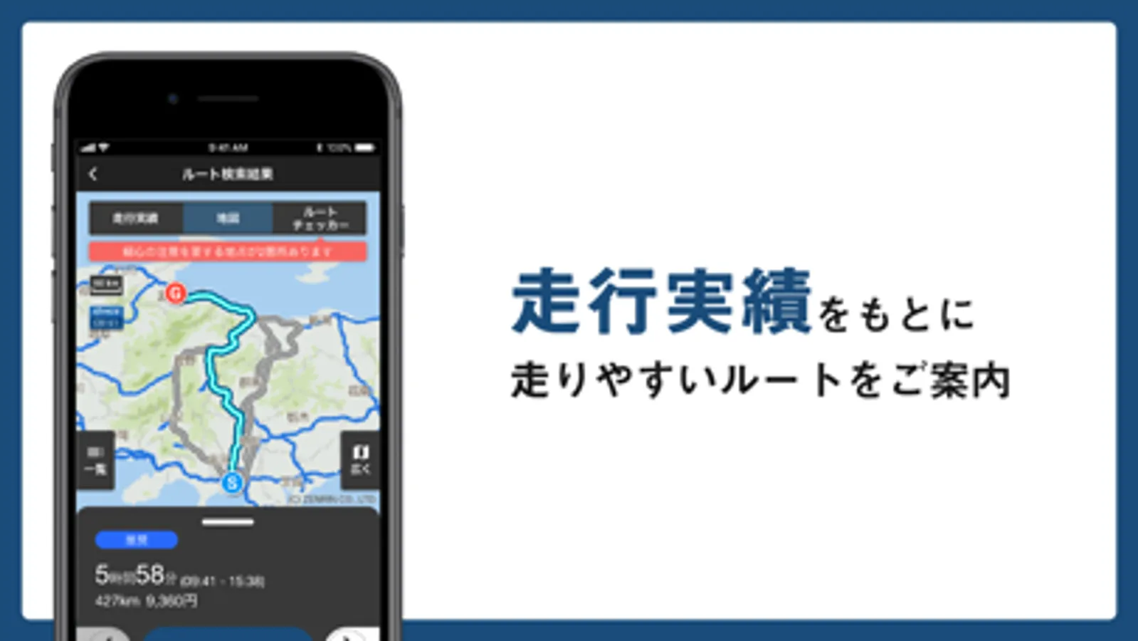 ドライブサポーターやカーナビタイムといった、ナビタイムのナビゲーションサービスで作りあげた技術をもとに、トラックドライバー向けの機能や各種データを追加し、物流や輸送などの業務利用に合った操作感を追及しました。