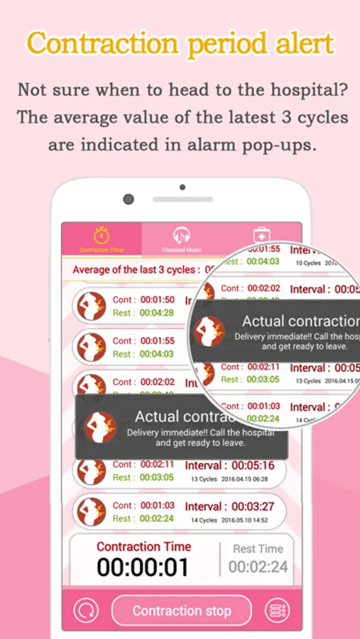 This contraction time has been designed for mothers facing childbirth to time the contractions easily.