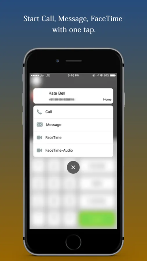 iSmartDialer supports the call to your favorite contacts, Send SMS, Send WhatsApp message, Email, FaceTime Audio and Video quickly.