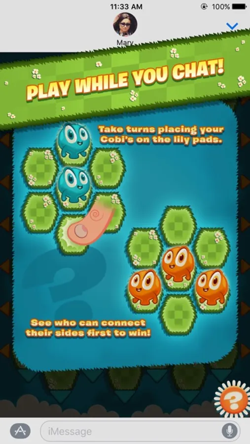 Cobi Busters is a super fun, challenging strategy game for you and your friends to play in iMessage. Take turns placing your little cobi's on the lily pad's and see who can connect their sides first and win!