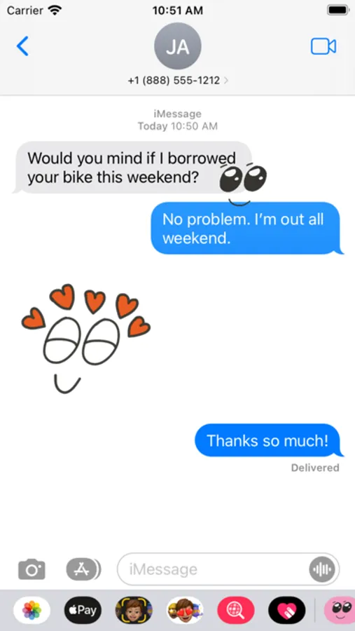It’s really easy to make Scribblings a part of your iMessage conversations. Either peel them out of the app and affix them onto existing chat bubbles or send the characters as large, standalone images. No matter how you do it, the Scribblings are sure to grab everyone’s attention!