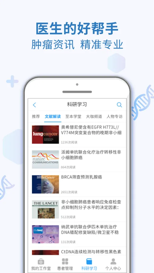 2. 医生精准诊疗全程管理好帮手:最新文献解读、NGS 知识-至本学堂、 大咖学术视频、国内外专家精准治疗前沿观念。