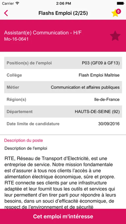 Pour postuler, il suffit de créer un compte avec son mail professionnel pour accéder aux offres et aux contenus. Il est possible de sélectionner des offres et de les marquer en favoris pour les consulter plus tard, ou de postuler directement depuis l’application. Deux accès différents sont proposés : « Offre RTE » et « Flash Emploi ». Le premier permet l’accès aux offres de RTE publiées dans la Bourse de l’Emploi des IEG tandis que le deuxième s’inscrit dans une démarche prospective d’appel à compétences sur un emploi de RTE ne faisant pas encore l’objet d’une publication dans la bourse de l’emploi.