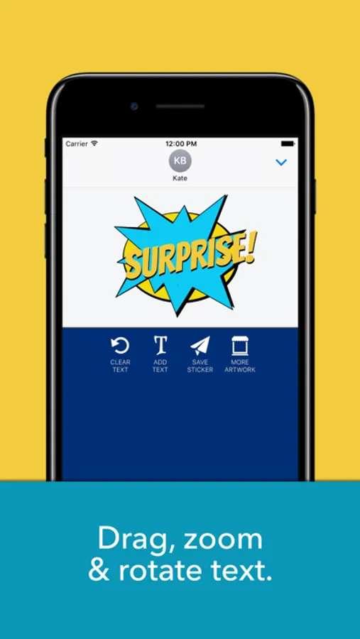 With this iMessage app you can create amazing stickers by adding several layers of text, using different styles and colors, and zooming or rotating them to achieve the desired effect.