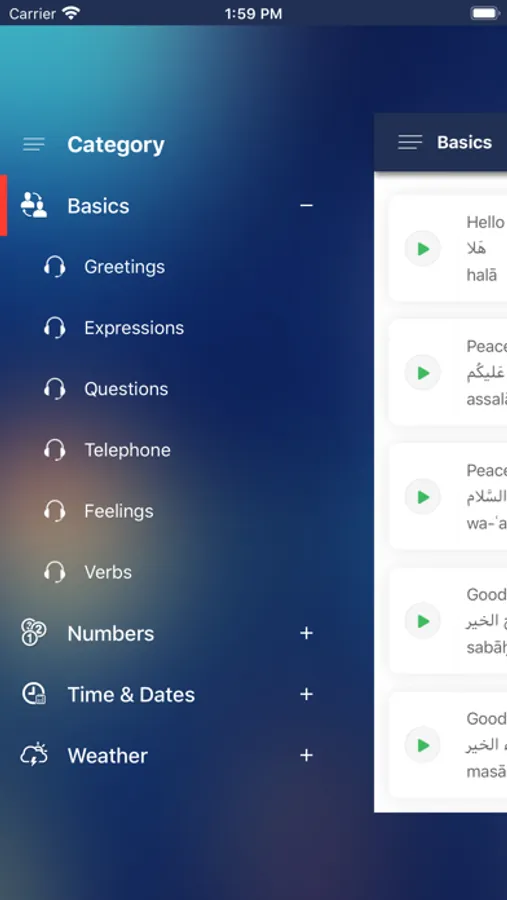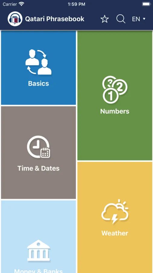 This phrasebook/dictionary is equipped with relevant pronunciation that aims to ease communication with natives in Qatar in different daily life situations. This Interactive Qatari phrasebook is for traveler's & expatriates and features common Qatari words and phrases. This Phrasebook App was created and edited by the Arabic language program of Georgetown University in Qatar © (2015).
