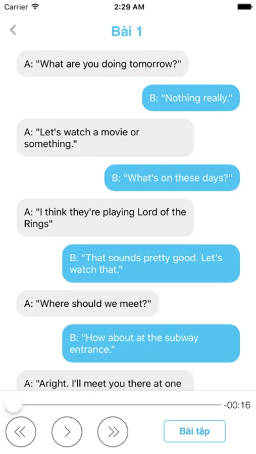 - Trong mỗi bài học đều có phần bài tập về nội dung bạn vừa nghe để giúp bạn kiểm tra lại kĩ năng của mình sau mỗi bài học.