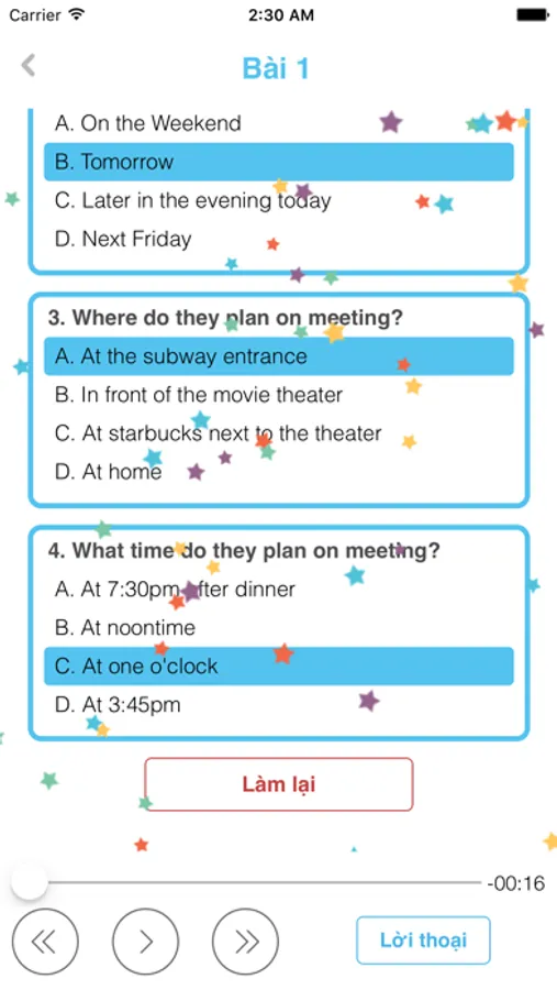 - Các bài nghe được sắp xếp theo cấp độ từ dễ đến khó, liên quan đến hầu hết các chủ đề trong đời sống, giúp bạn không chỉ luyện nghe mà còn hiểu được phần nào văn hoá, cuộc sống ở các nước nói Tiếng Anh.