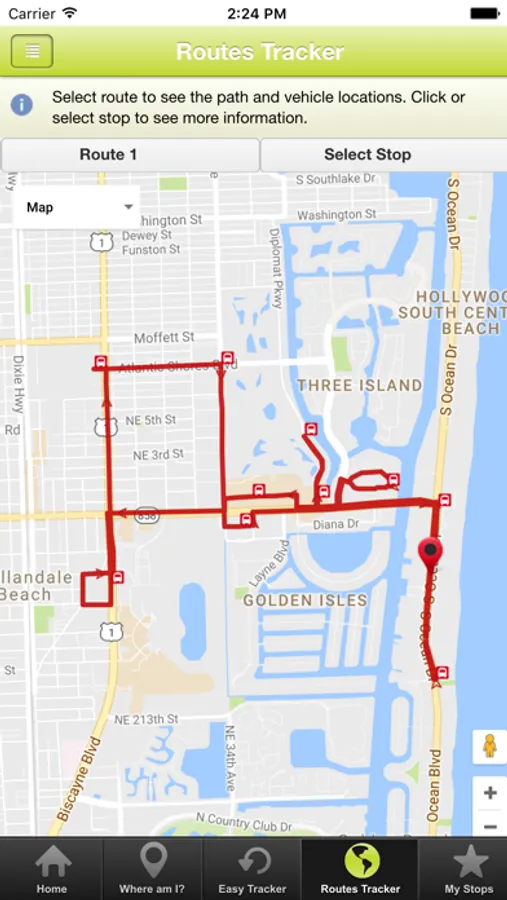 The City of Hallandale Beach Mobile App will help you track the City’s four (4) community bus routes. The application will allow tracking the location of the buses on the map and providing you with real time information on the arrival of the buses at a designated stop. You will be able to create a list of your favorite stops to quickly have access to the buses estimated time of arrival (ETA).