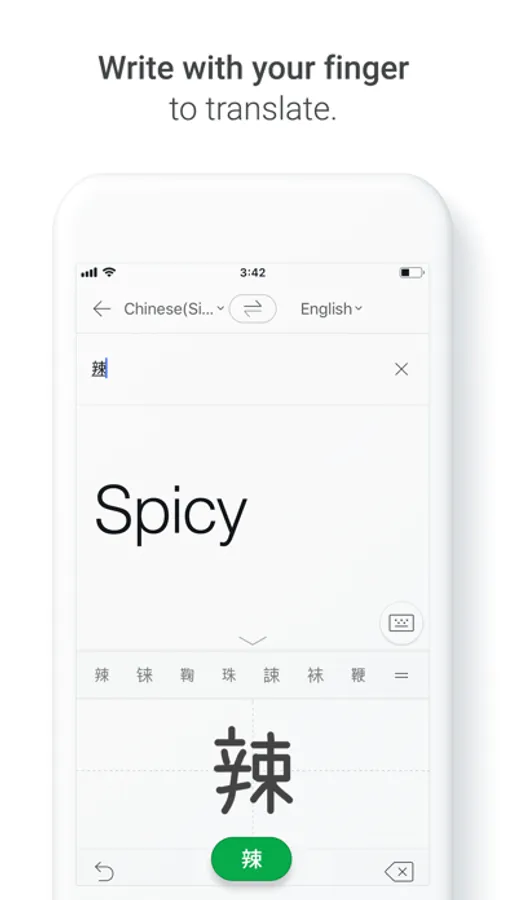Handwriting translation that finds the correct word and translation when you write using your finger