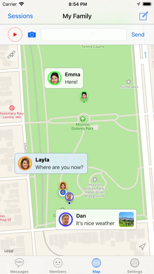 - This App updates the user's location information in conjunction with the reference of location information of other members on iCloud, if the user permits to share the location information in the participating sessions.
