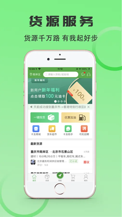 实时货源,智能匹配,找货拉货,掌握自主权;
