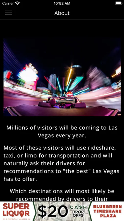 By using KICKBACK, a referral based business has essentially "partnered" with thousands of Las Vegas drivers, who are now, a eager sales force, ready to promote partnered businesses to the millions of visitors asking locals for suggestions.