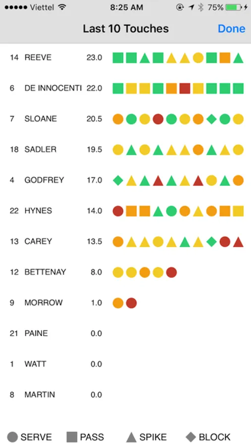 Quick glance on "Last 10 Report" to see who's hot and who's not based on the last 10 touches recorded for each player.