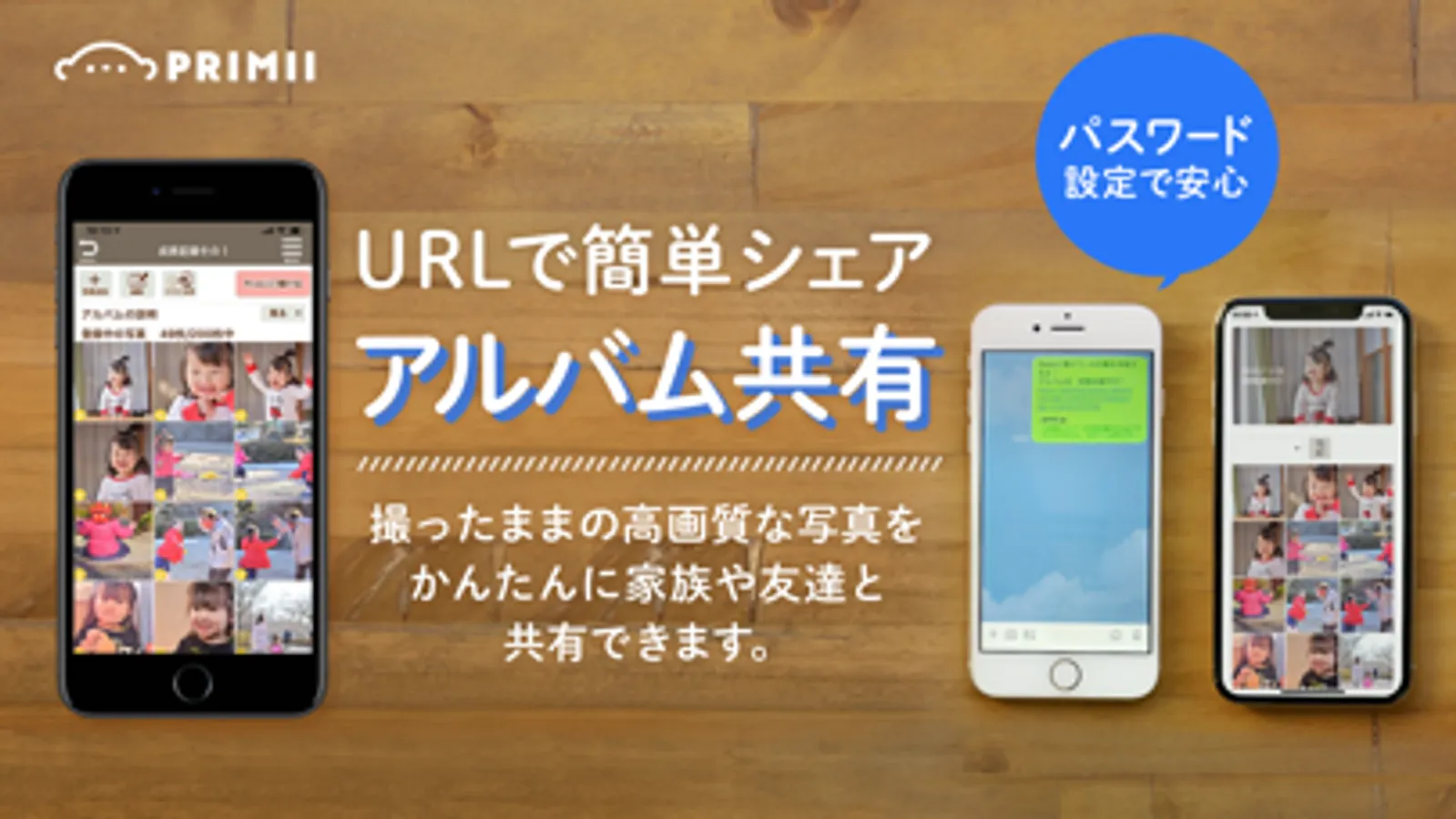 PRIMII(プリミィ)なら、撮った画質そのままで高画質のまま共有ができます。