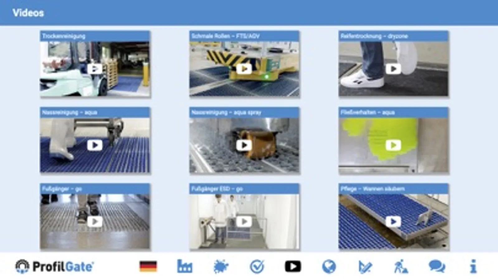 ProfilGate® ist ein Reinigungsfeld, das eine Barriere für Schmutz bildet und den Großteil der Partikel abnimmt. Es arbeitet ohne Strom und ohne Aufwand. Die verschiedenen Modelle eignen sich entweder für trockene Anwendungen oder nasse Reinigung mit Desinfektionsmittel bei besonderen Hygienevorgaben. Technische Sauberkeit wird somit einfach eine Frage der Methode.