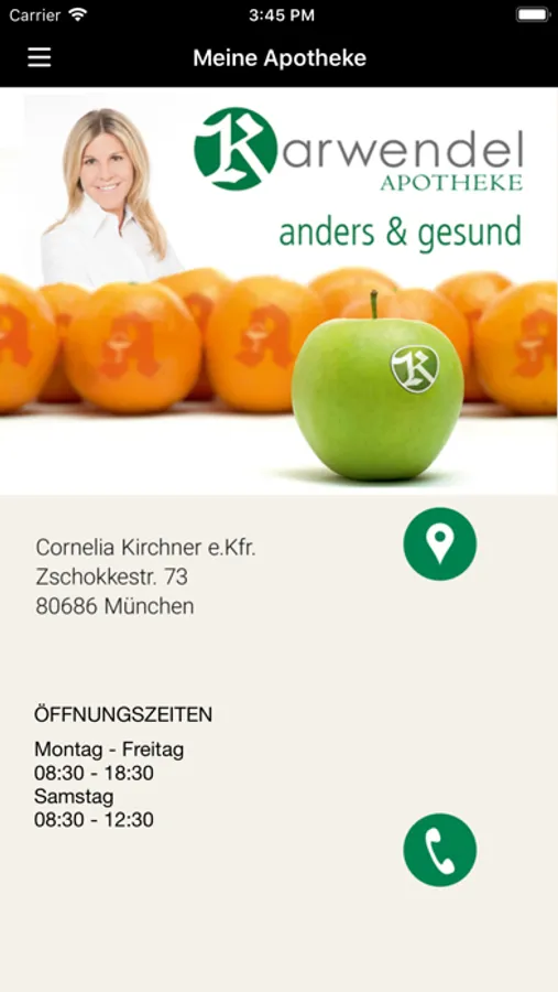 Außerhalb unserer Öffnungszeiten zeigt Ihnen die App immer die nächstgelegene dienstbereite Apotheke an.