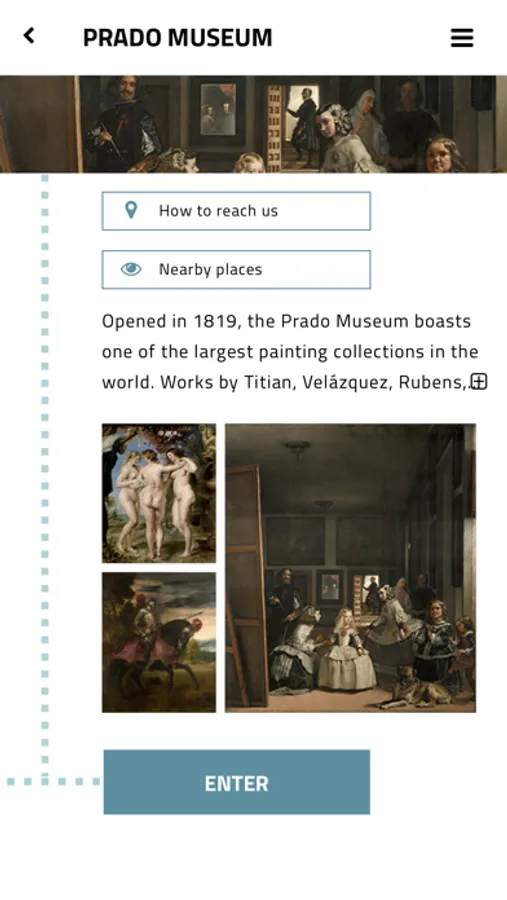 The Essential Art Walk App will help you discover 24 great masterpieces, eight in each museum, in a simple and entertaining way. A complete tour of the History of Western Art in the heart of Madrid